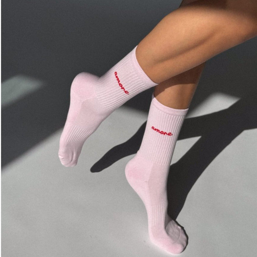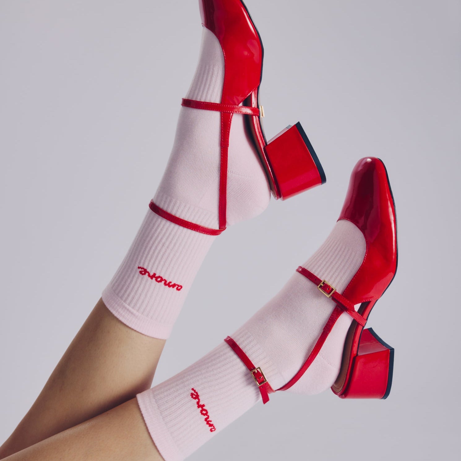 Sag Amore zu jedem Moment – dieser Socken ist eine Hommage an die kleinen Gesten mit großer Wirkung. Das zarte Rosa kombiniert mit dem roten amore Schriftzug bringt subtile Romantik und modernen Style in Einklang. Teil unserer Colorful Statement Kollektion – für alle, die mit Liebe durchs Leben gehen. Wie immer: weiche Baumwolle, verstärkte Sohle, keine störenden Nähte. Produziert in Portugal – langlebig, fair, hochwertig.