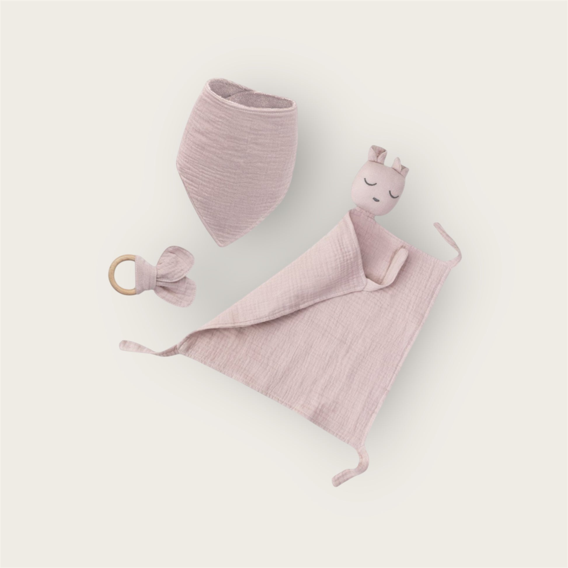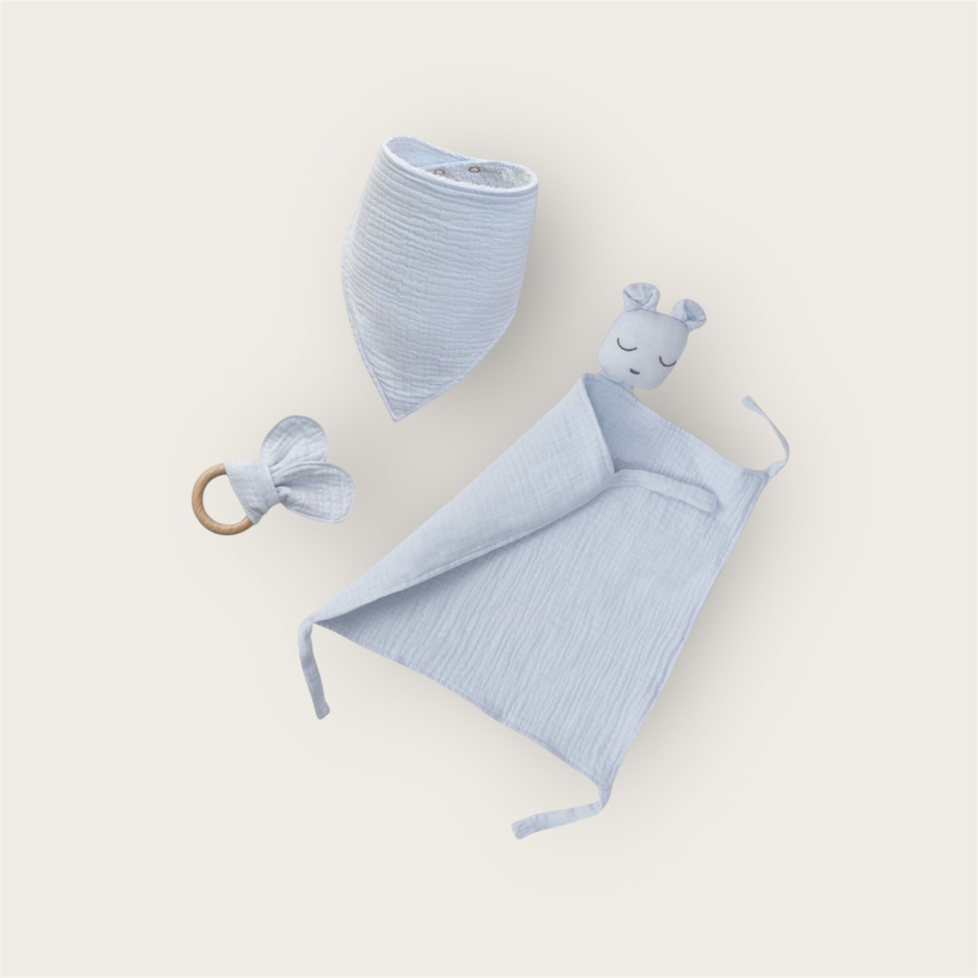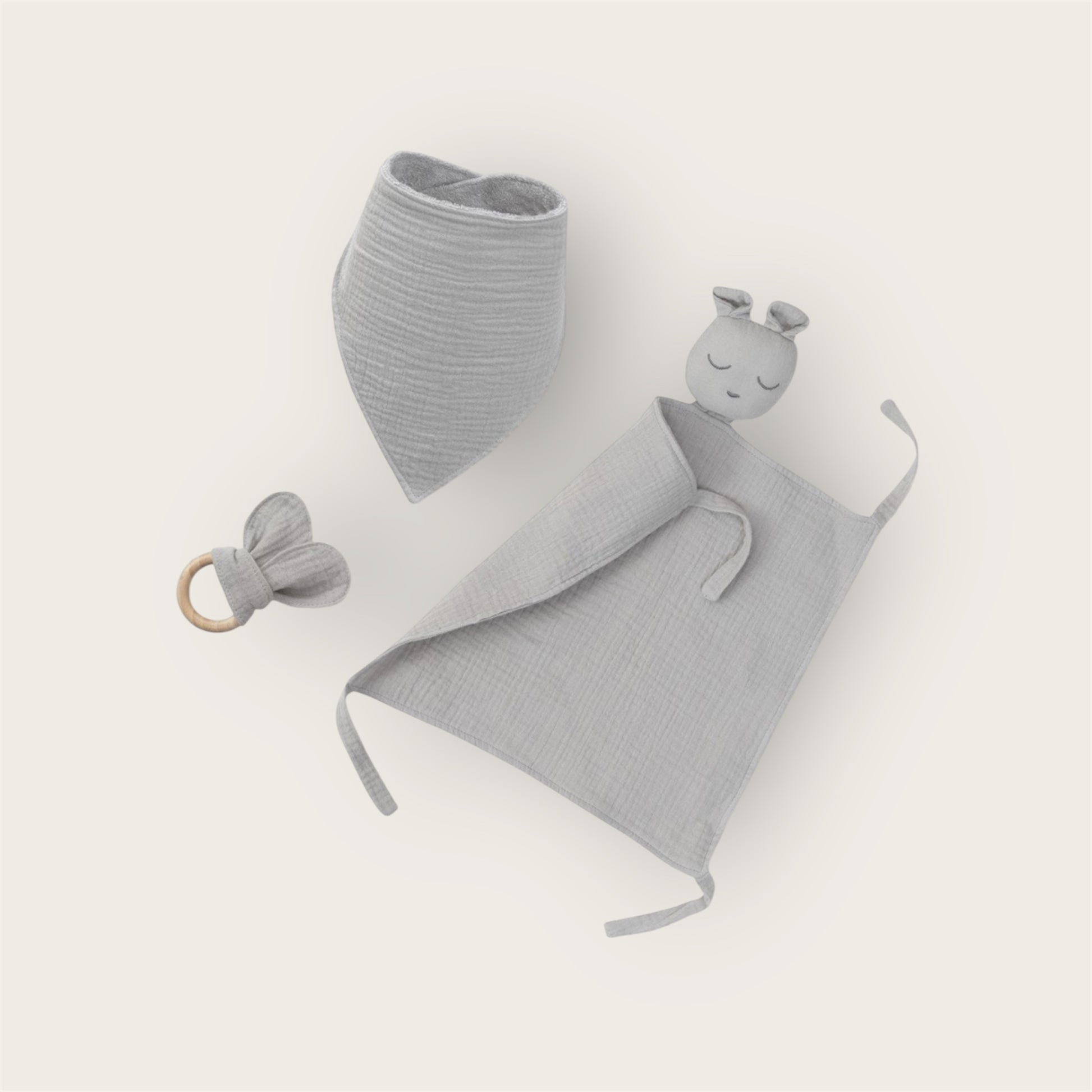 Dieses liebevoll gestaltete Set ist ein absolutes Must-have für jedes Baby. Die zarten Töne verleihen ein besonders niedliches und angenehmes Aussehen. Ideal, um Ihr Baby beim Zahnen zu beruhigen und zu trösten.