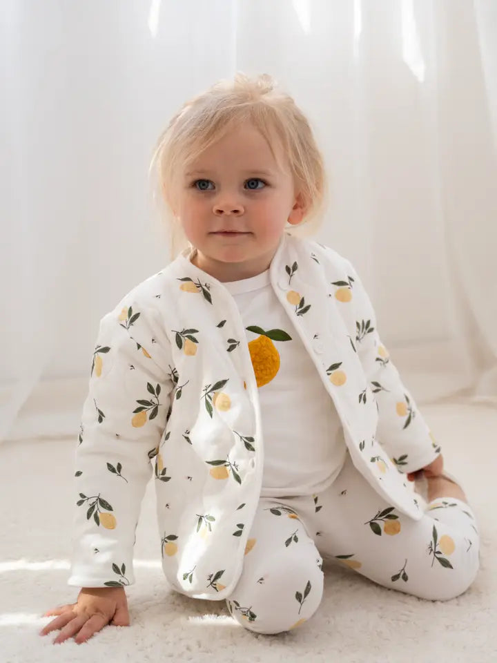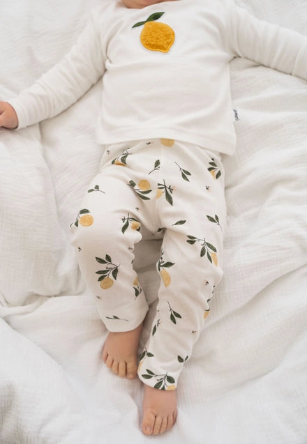 Diese Leggings ist aus weicher Baumwolle gefertigt und hat einen wunderbar dehnbaren Bund, für einen maximalen Tragekomfort. Perfekt für den Alltag und ganz goldig in Kombi mit unserem gelben Sweatshirt, oder dem passenden Langarmshirt in weiß mit Zitronenpatch.