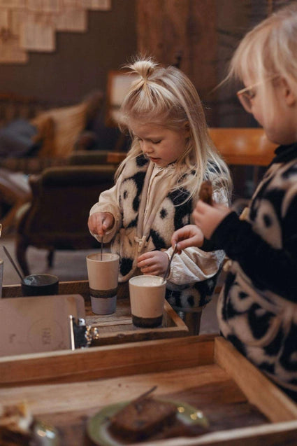 Je nach Größe werden sie mit einem oder zwei stilvollen Holzknöpfen geschlossen und verfügen ab Größe 98/104 über Taschen.