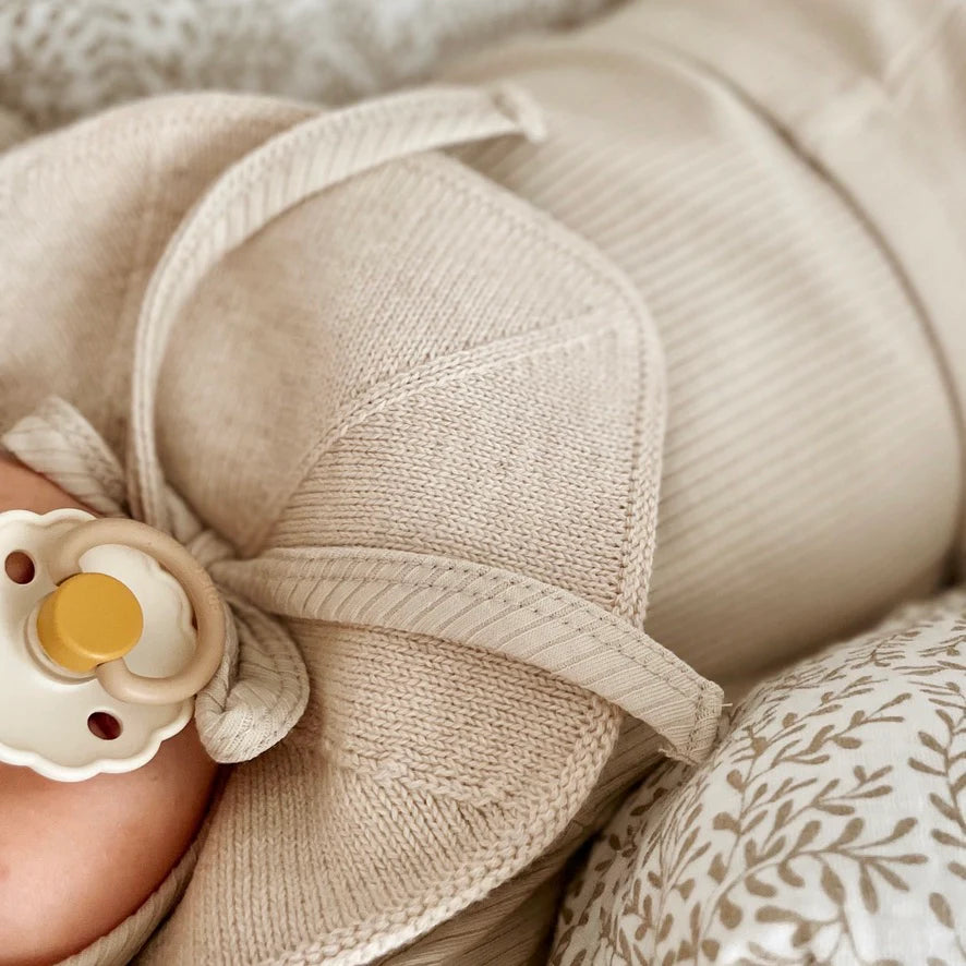 Freuen Sie sich auf unser gestricktes Lätzchen zum Zahnen in der Garderobe Ihres Babys, in der Komfort, Stil und Nachhaltigkeit nahtlos miteinander harmonieren. Genießen Sie die Freude der Elternschaft mit einem Hauch von Eleganz.
